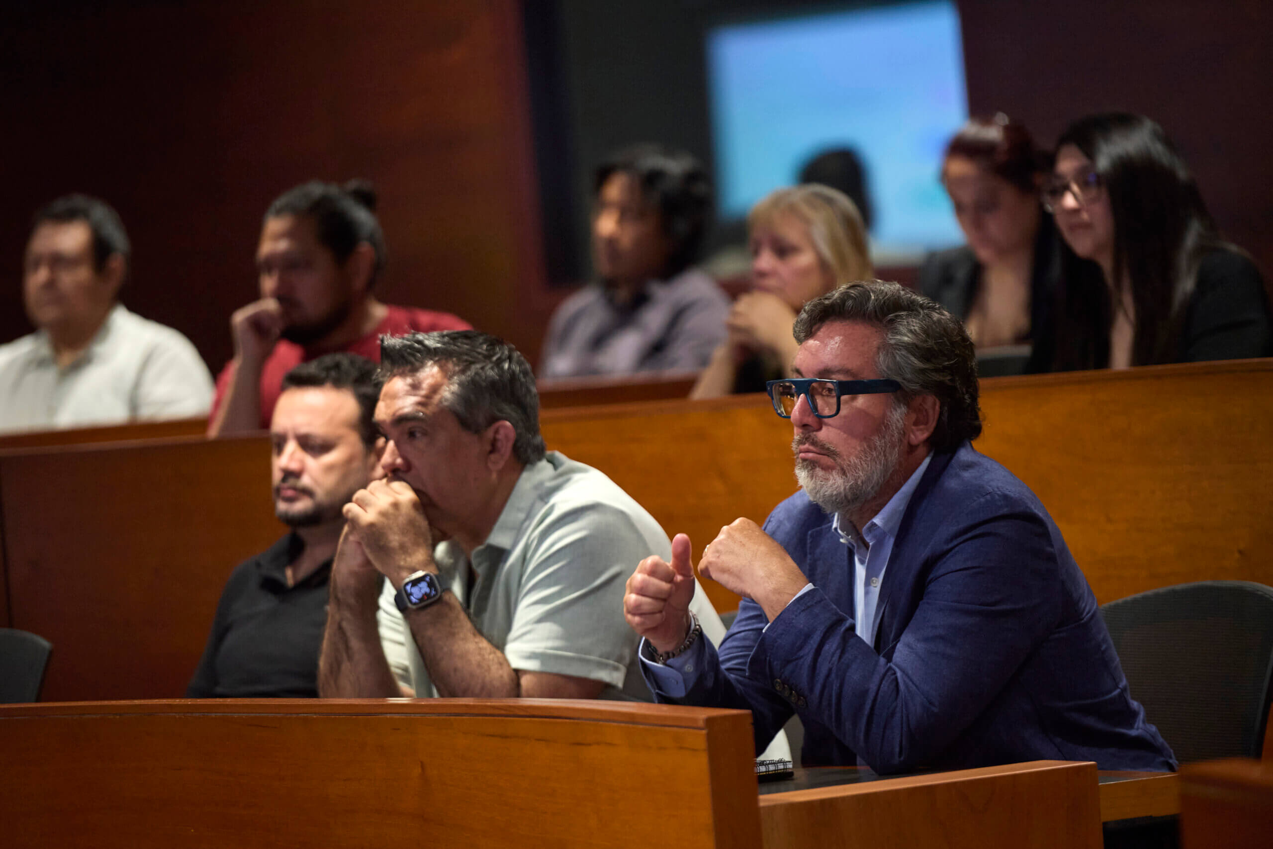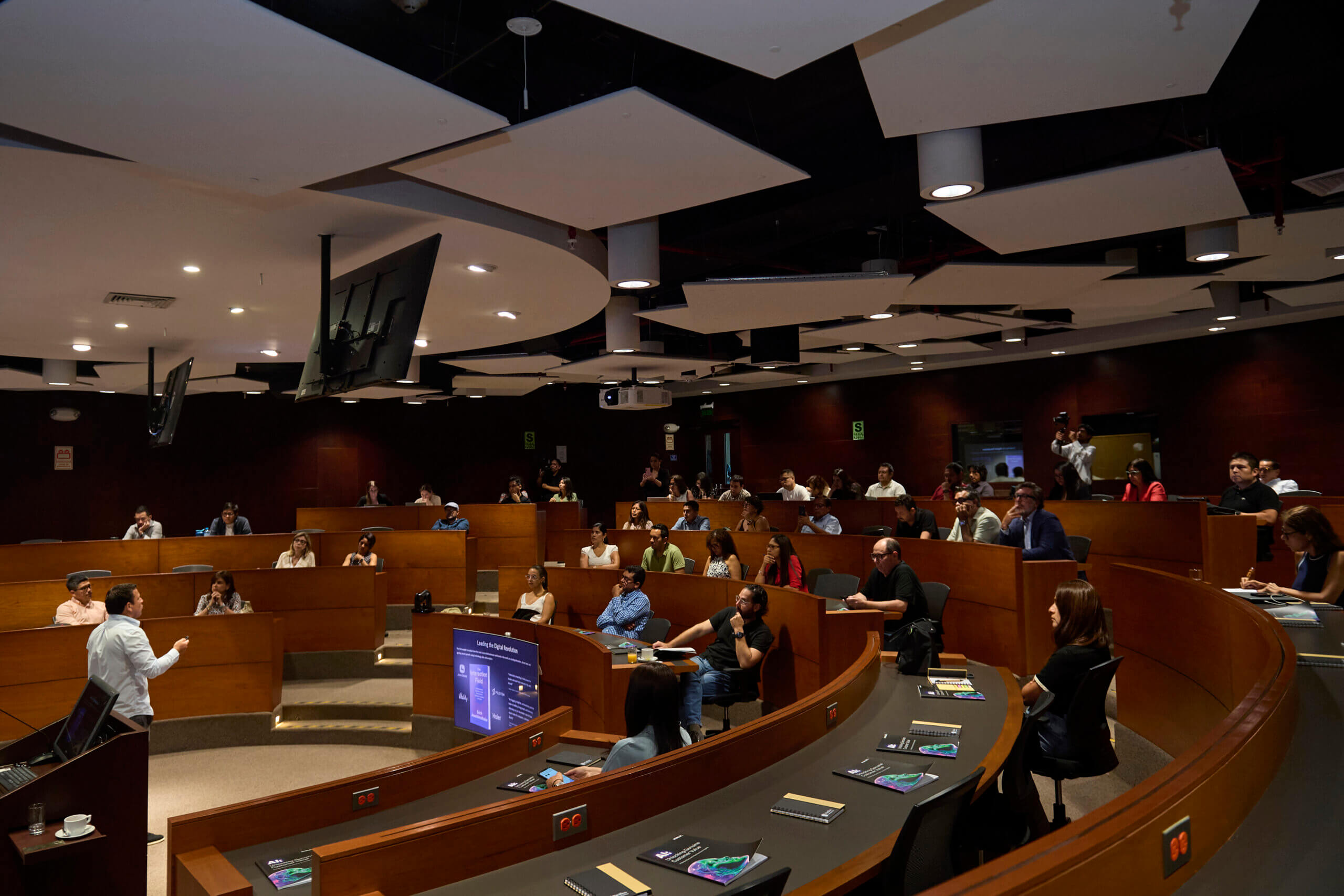 - El público escucha la intervención de Mauricio Andújar durante el evento sobre IA de Vivaldien la Escuela de Negocios Pacífico